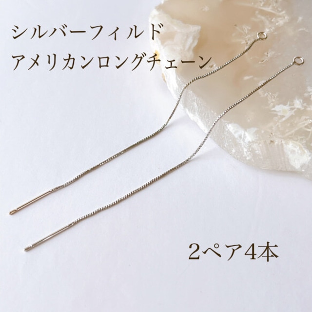 高品質 シルバーフィルド アメリカン ロングチェーン 2ペア4個 シルバー 素材 アクセサリーパーツ silver