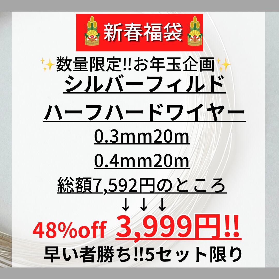 数量限定5点 !! 新年福袋 2026 大特価 シルバーフィルド ハーフハードワイヤー 0.3㎜ & 0.4㎜ 各20m 計40m 福袋