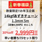 数量限定5点 !! 新年福袋 2026 お年玉企画 大特価 14kgf あずきチェーン 1.3mm 5m 福袋