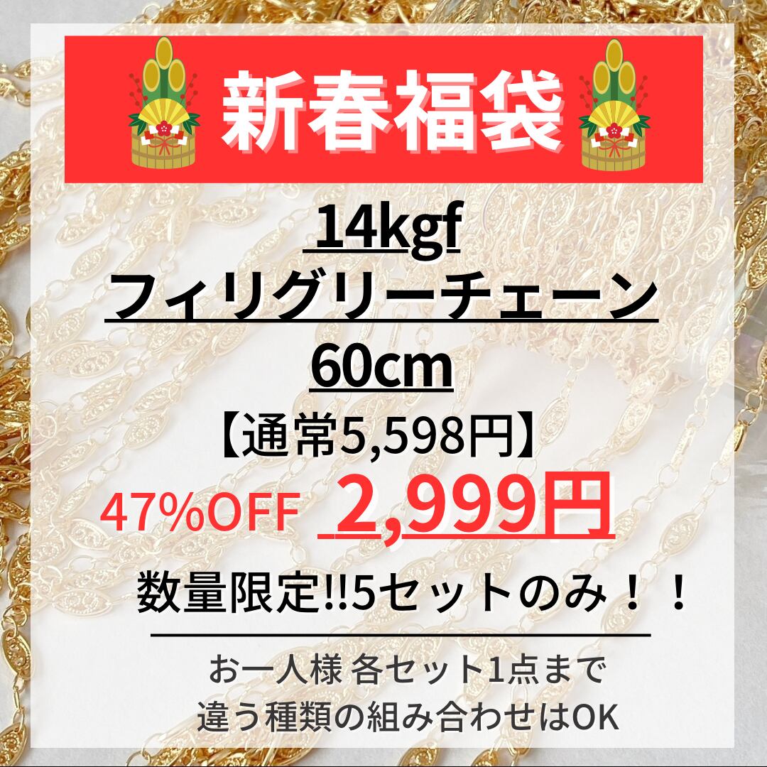 数量限定5点 !! 新年福袋 2026 大特価 お年玉企画 14kgfフィリグリーチェーン 60cm 福袋