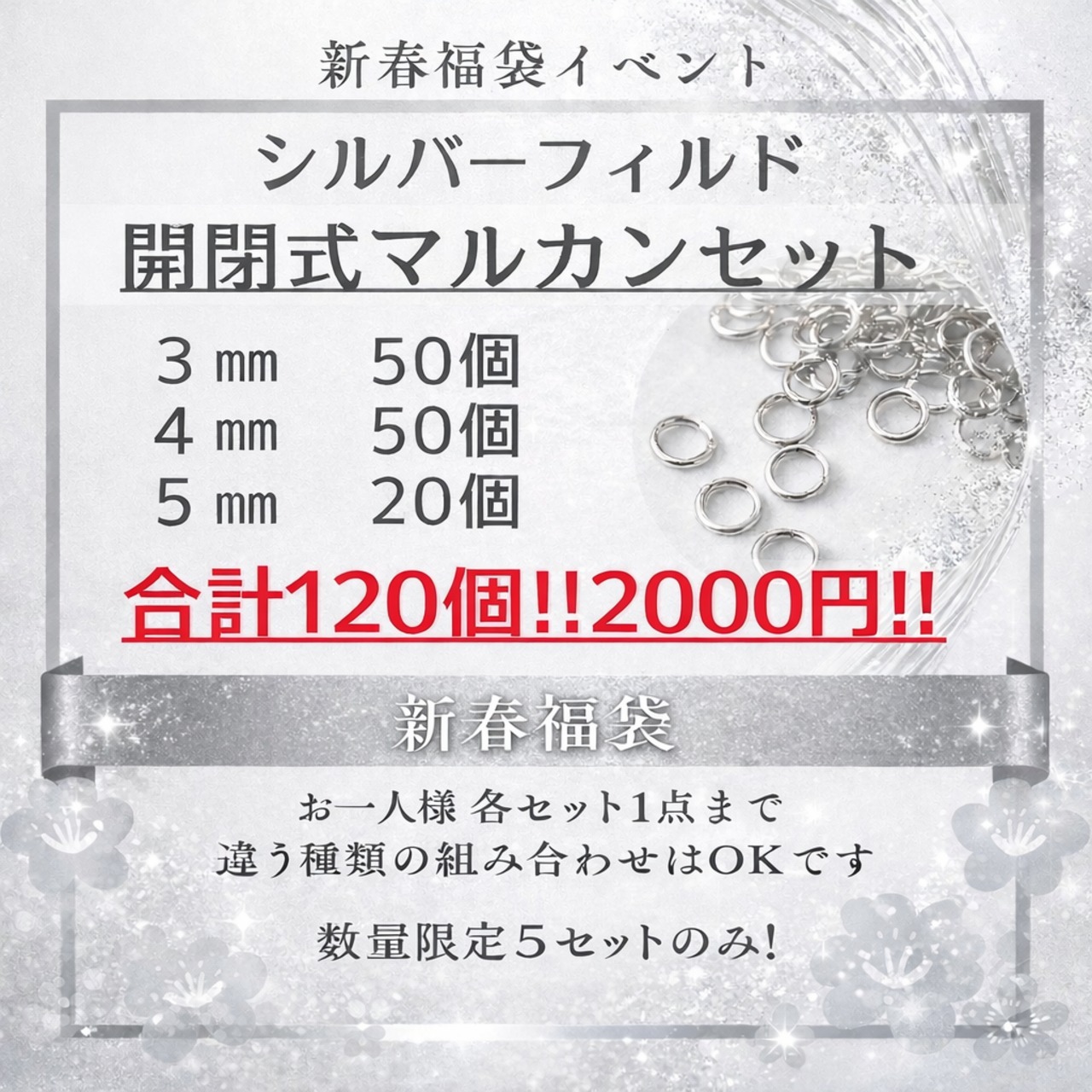 数量限定5点 !! 新年福袋 2026 大特価 シルバーフィルド シンプル丸カン 開閉式 3 4 5mm 計120個 マルカン