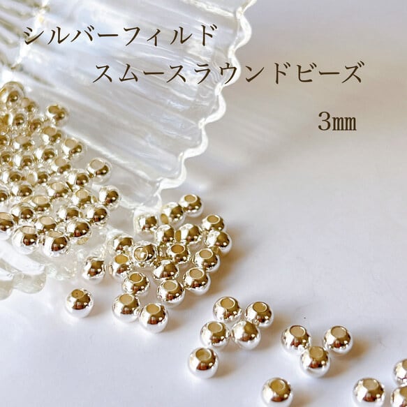 コピー:高品質 シルバーフィルド スムースラウンドシンプルビーズ 3㎜ 10個 アクセサリーパーツ シルバー 素材 silver