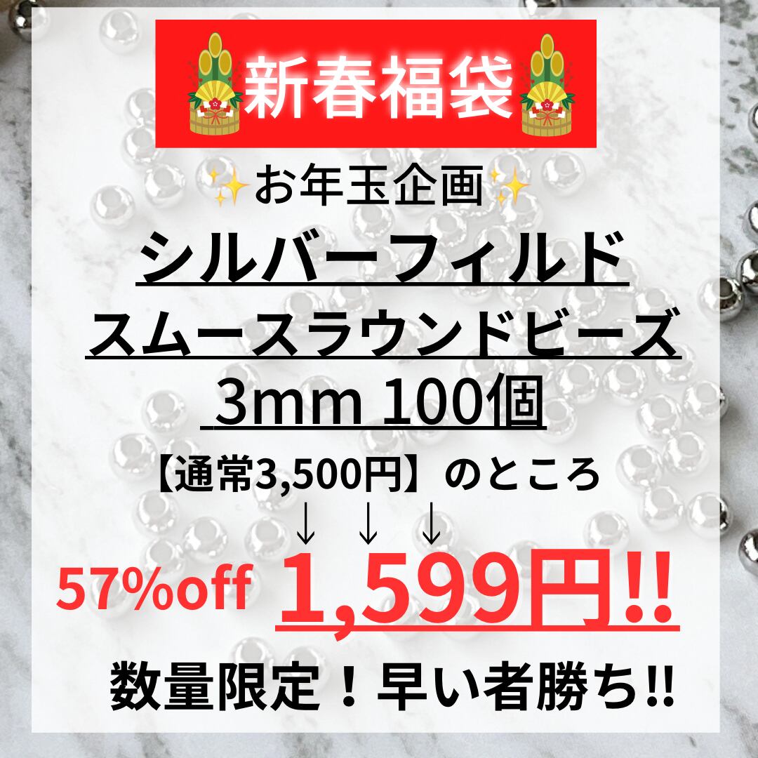 数量限定5点 !! 新年福袋 2026 大特価 シルバーフィルド スムースラウンドシンプルビーズ 3㎜ 100個 ビーズ 福袋