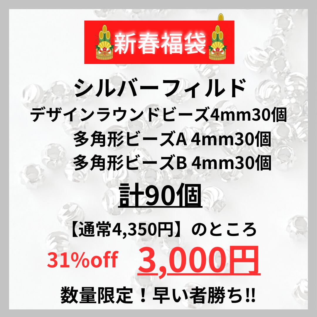 数量限定5点 !! 新年福袋 2026 大特価 シルバーフィルド デザインビーズ 4mm 3種 各30 計90個 ビーズ