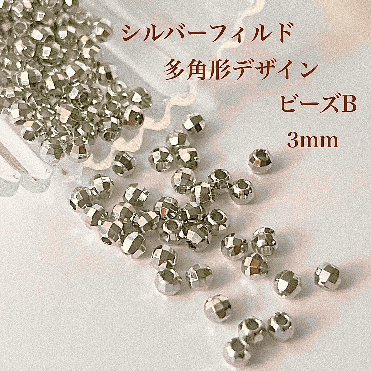 高品質 シルバーフィルド 多角形デザインビーズB 3㎜ 10個 アクセサリーパーツ シルバー 素材 silver